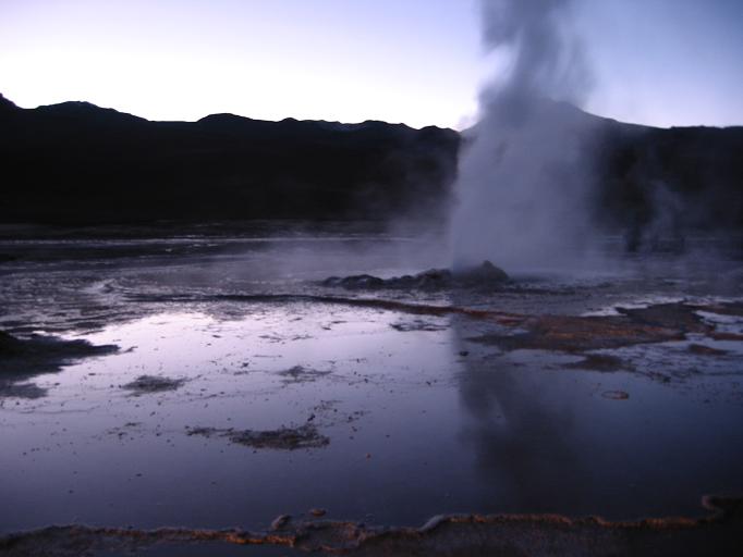 The geysers at the "El Tatio" field like the early morning hours - that's when they are the most active. For tourists this means to leave San Pedro at 4 am in order to reach the geysers in time for the sunrise...