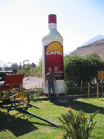 The Esqui valley, close to La Serena is famous for it's pisco distillies, "Capel" being the best known of the country (they sell smaller bottles, too). "Pisco Sour", made of Pisco, lemon juice and sugar is the national drink of Chile.