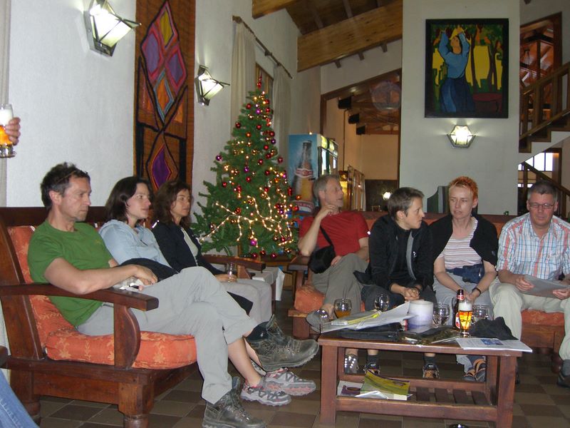 Ein bisschen Weihnachtsstimmung und ein letztes kühles Bier im Hotel in Penitentes