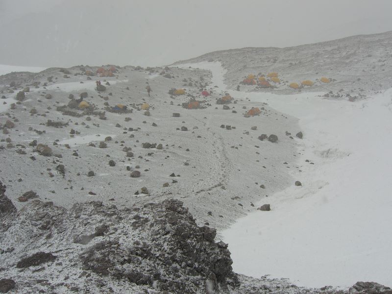 Gegen Abend beginnt der Schneesturm, der uns die ganze Nacht wachhalten wird...