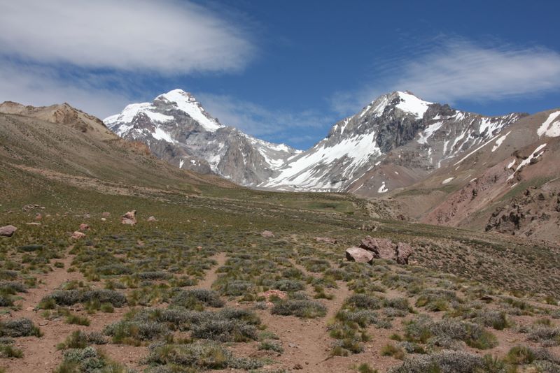 'Unsere' beiden Gipfel - links der Aconcagua, rechts der Ameghino (5900m), welcher zur Akklimatisation auf dem Programm steht