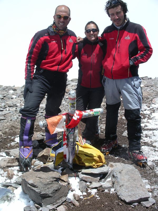 Erfolgreiche Guides - sie haben alle Gruppenteilnehmer auf den Gipfel gebracht (Mauricio, Popi und Fernando)