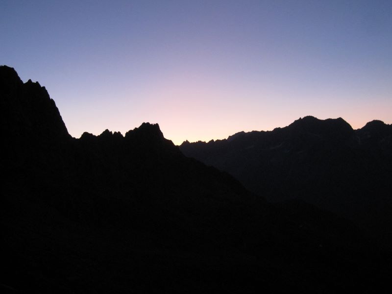Frühmorgendlicher Ausblick auf dem Weg zum Südgrat des Salbitschijen