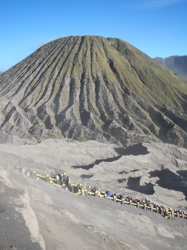 Stairways leading up to the rim of the small active Volcano inside Bromo