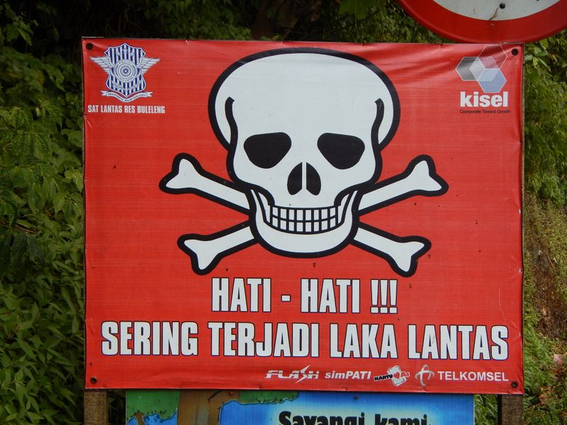 Hati-hati means "careful" - an abundant roadsing, and one not to be neglected...
