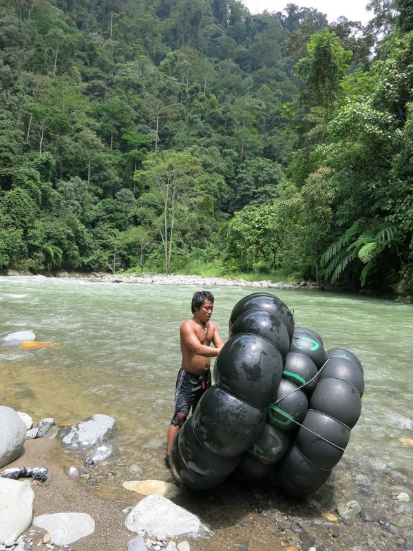 On day three, preparing the "raft" which will take us back to Bukit Lawang the easy (and fun!) way