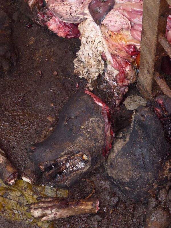 A glance to the ground reveals even more cruelty and causes nausea... we've seen enough and leave the market