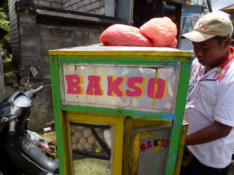 Indonesias classic street food, "bakso" meaning "meat loaf" (served in a tasy noodle soup)