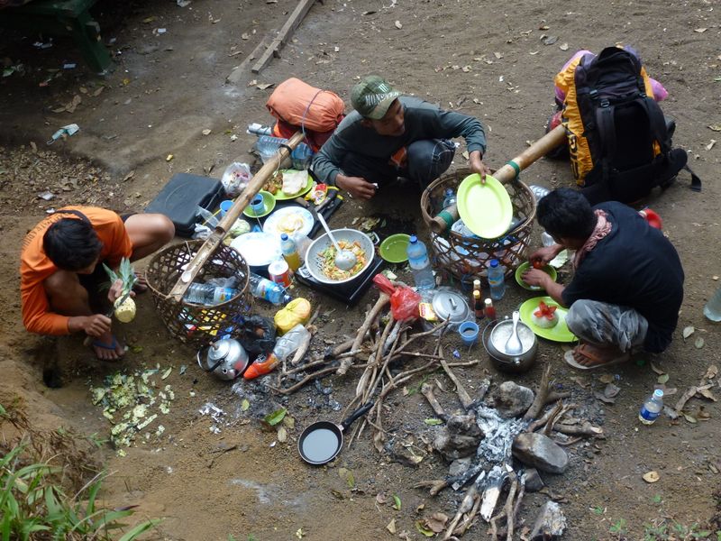 Porters preparing lunch with a basic infrastructure...