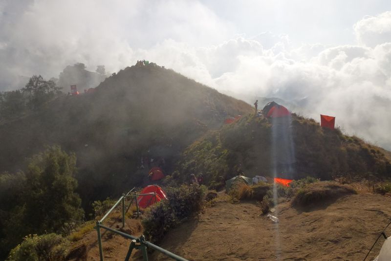 Finally on the crater rim, where we'll spend the first night, every flat spot becomes a campground