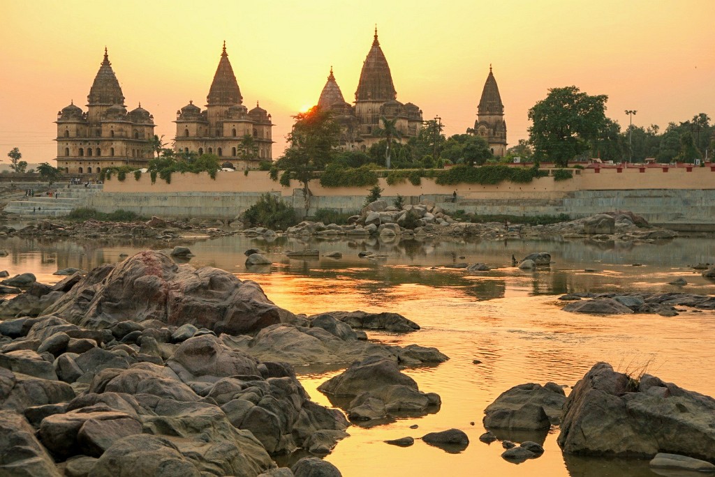 54 Sunset over the Chhatris Cenotaphs in Orchha.