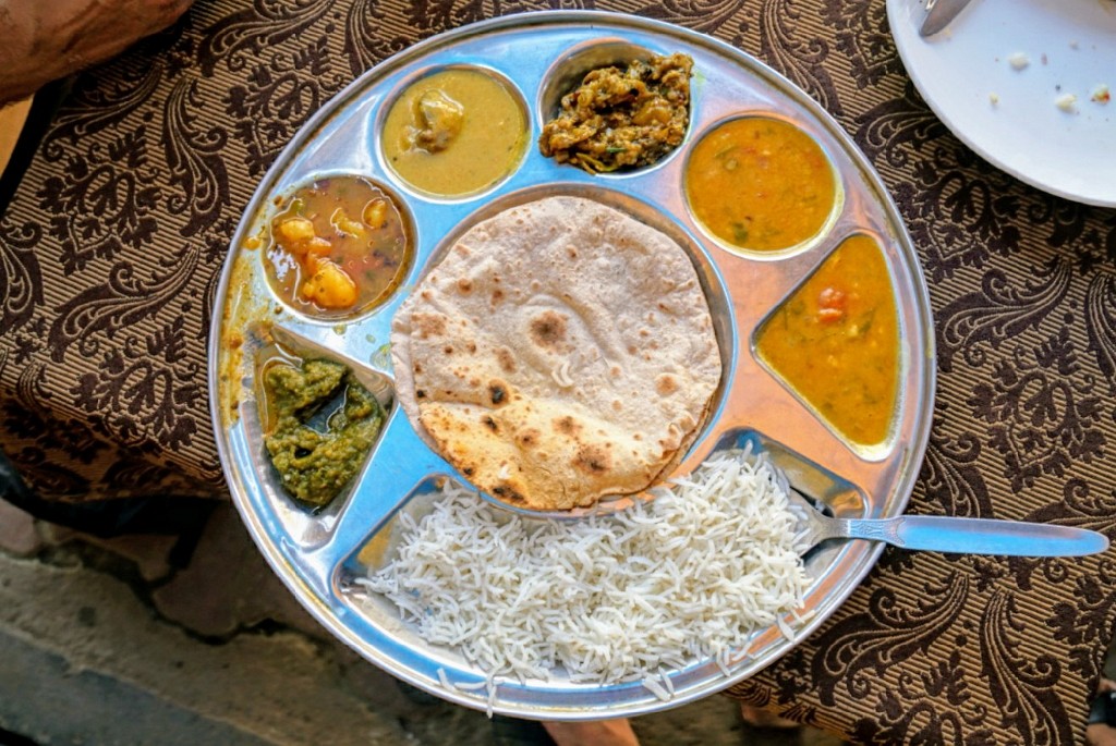 86 Simple but delicious Thali at the Ramraja Restaurant & Cafe in Orchha.