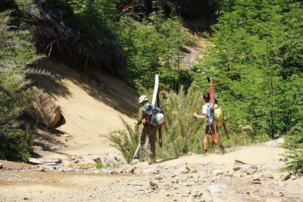 ![]() 41 Pampa Linda to Puerto Frias 3-Day Trek (Day 1) Skiers on their descent from Mount Tronador - lookind a bit out of place on the dusty road... |