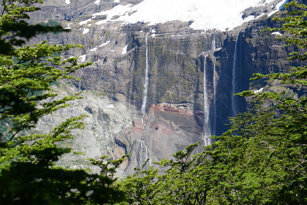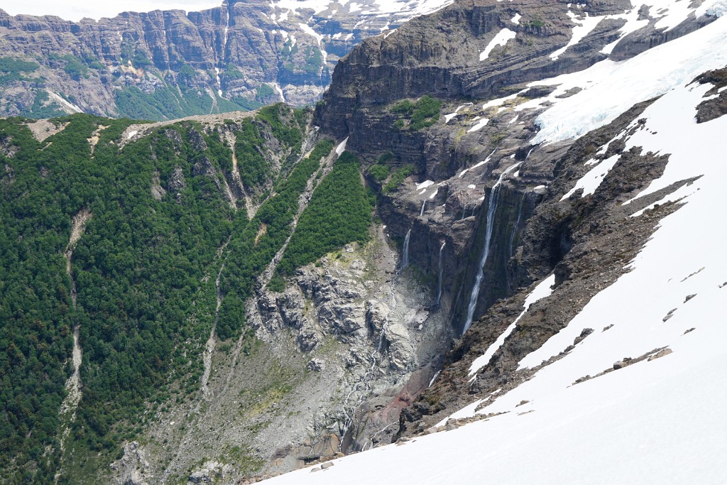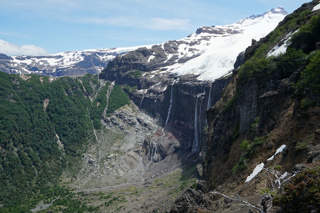 ![]() 42 Pampa Linda to Puerto Frias 3-Day Trek (Day 1) Waterfalls dropping from the Tronador glacier |