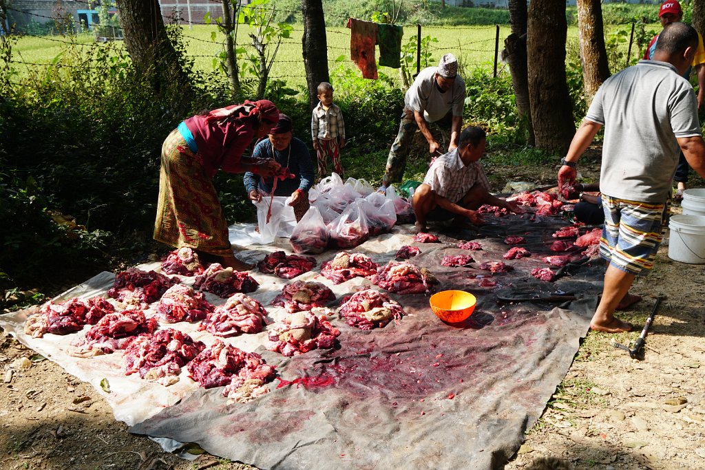 Distributing a slaughtered buffalo to the village families...